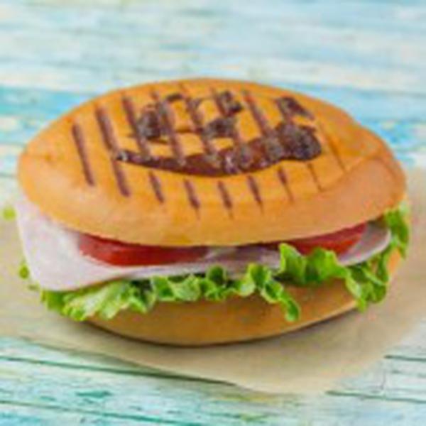 Состав: Тесто, сыр, ветчина, томат, лист салата, майонез.